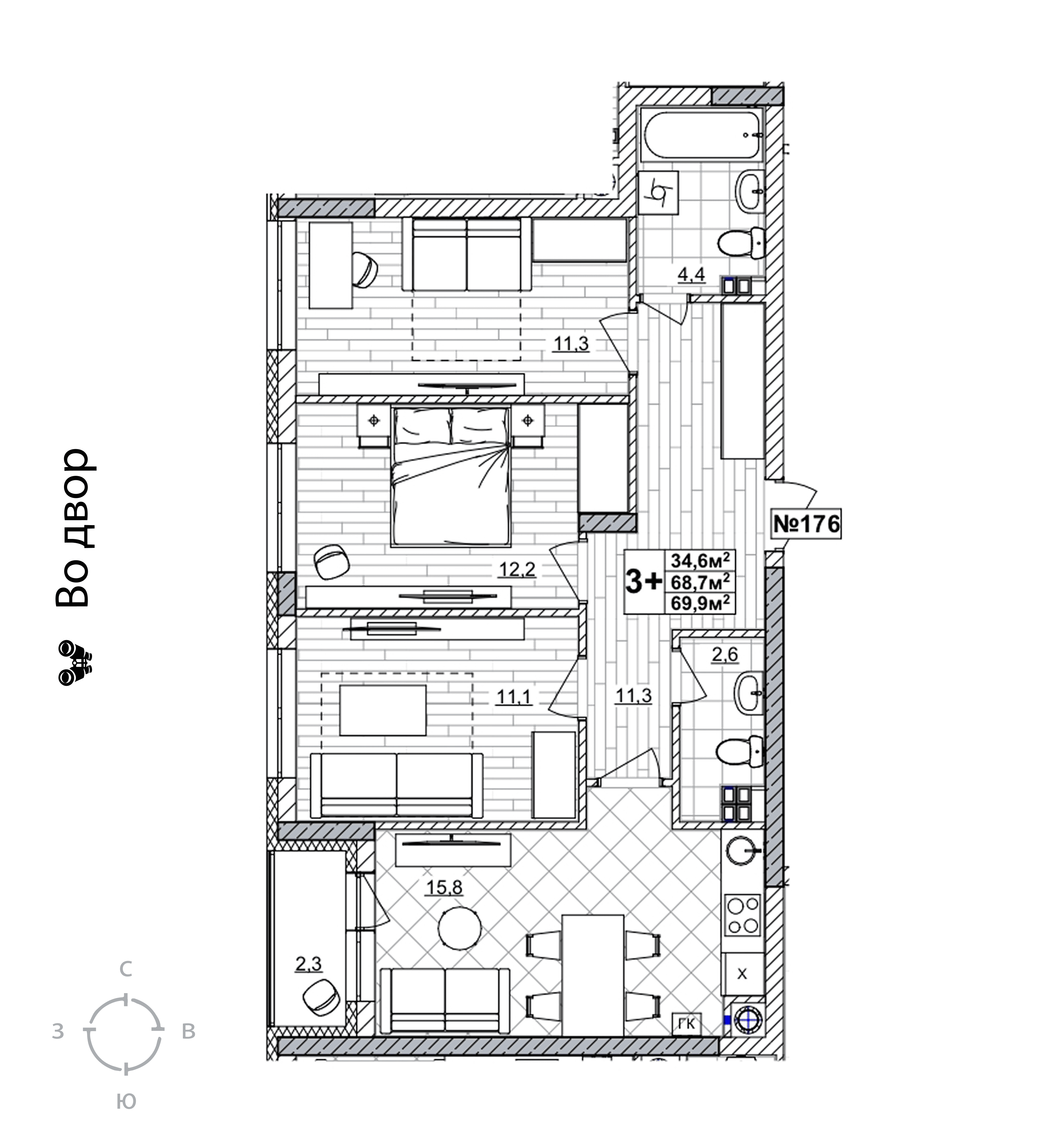 В продаже 3-комнатная квартира в новостройке жилого комплекса "Смородина" на 2 этаже, общая площадь69.9 м.кв., кухня 15.8 м.кв. Жилой комплекс располагается по адресу Зеленховоская-Парышевская-Ореховская, 2. Стоимость данной квартиры составляет 11 990 000 рублей. На нашем сайте DOMEX, Вы можете оставить бесплатную on-line заявку на это предложение и с Вами свяжется напрямую застройщик.