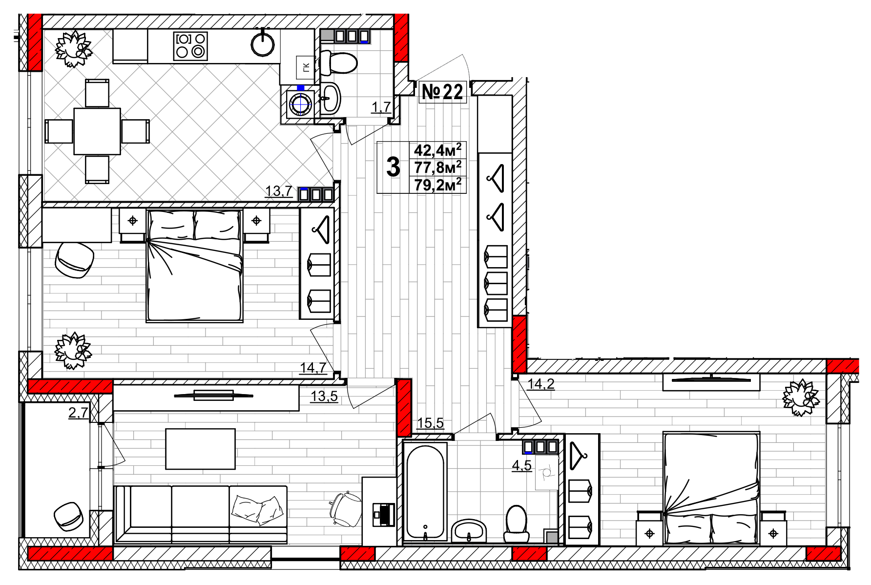 В продаже 3-комнатная квартира в новостройке жилого комплекса "Смородина" на 3 этаже, общая площадь79.2 м.кв., кухня 13.7 м.кв. Жилой комплекс располагается по адресу ЖК Смородина, 4. Стоимость данной квартиры составляет 11 790 000 рублей. На нашем сайте DOMEX, Вы можете оставить бесплатную on-line заявку на это предложение и с Вами свяжется напрямую застройщик.