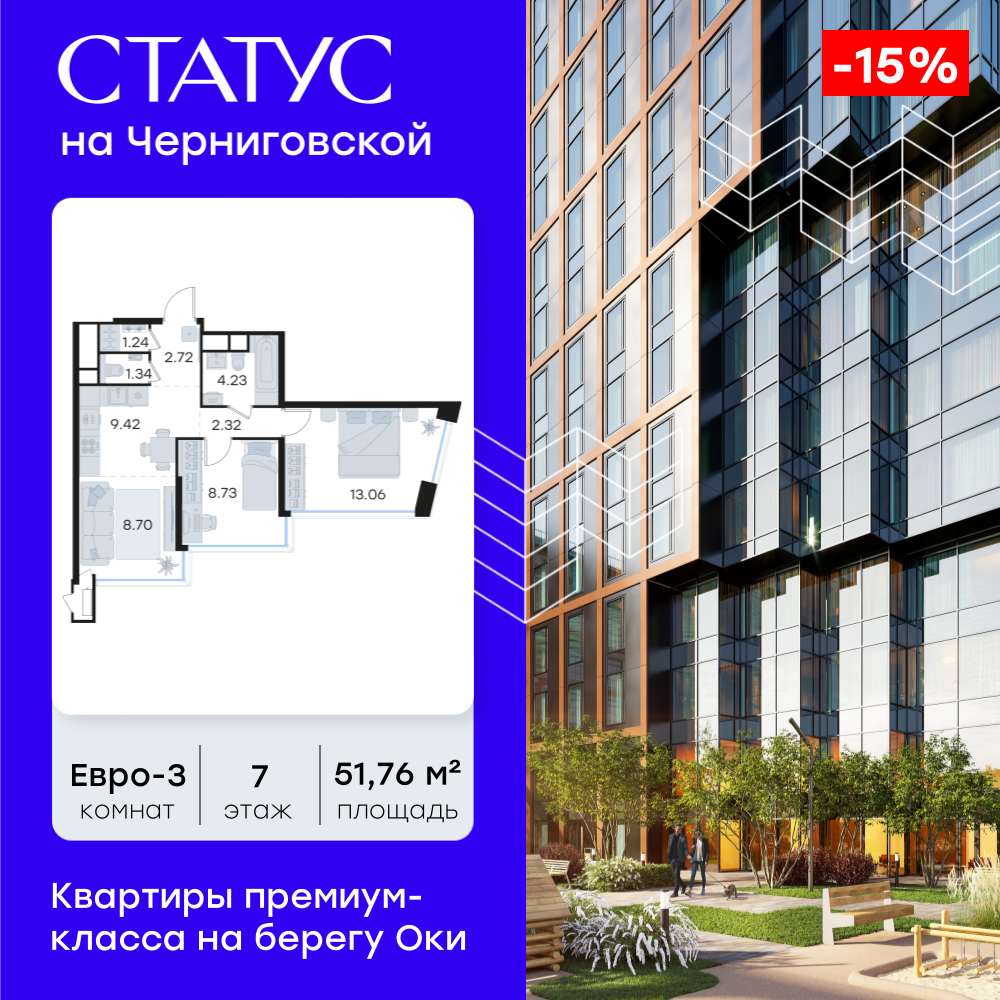 В продаже 2-комнатная квартира в новостройке жилого комплекса "СТАТУС на Черниговской" на 7 этаже, общая площадь51,76 м.кв., кухня 9,42 м.кв. Жилой комплекс располагается по адресу Гаршина улица , д. 40. Стоимость данной квартиры составляет 16 789 999 рублей. На нашем сайте DOMEX, Вы можете оставить бесплатную on-line заявку на это предложение и с Вами свяжется напрямую застройщик.