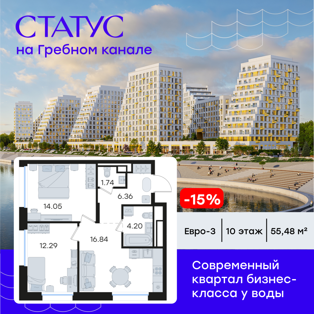 В продаже 2-комнатная квартира в новостройке жилого комплекса "СТАТУС на Гребном канале" на 10 этаже, общая площадь55,48 м.кв., кухня 16,84 м.кв. Жилой комплекс располагается по адресу Набережная Гребного канала улица . Стоимость данной квартиры составляет 13 119 999 рублей. На нашем сайте DOMEX, Вы можете оставить бесплатную on-line заявку на это предложение и с Вами свяжется напрямую застройщик.