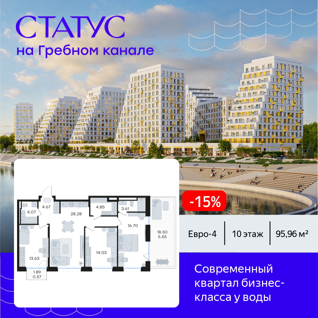 В продаже 3-комнатная квартира в новостройке жилого комплекса "СТАТУС на Гребном канале" на 10 этаже, общая площадь95,96 м.кв., кухня 28,28 м.кв. Жилой комплекс располагается по адресу Набережная Гребного канала улица . Стоимость данной квартиры составляет 30 779 999 рублей. На нашем сайте DOMEX, Вы можете оставить бесплатную on-line заявку на это предложение и с Вами свяжется напрямую застройщик.