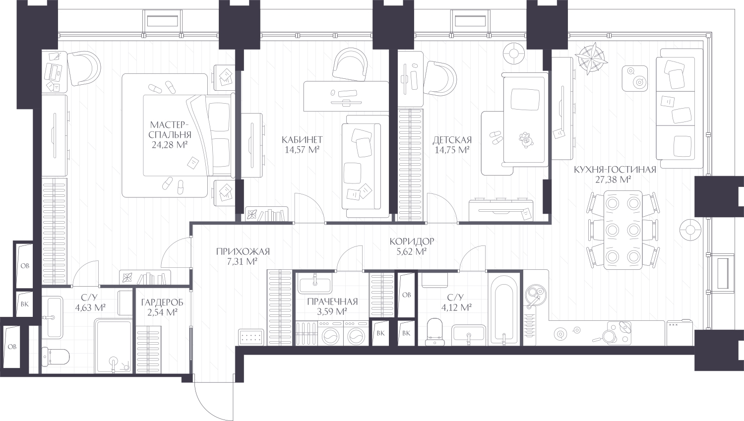 14.75 кв.м. 14.57 кв.м. 24.28 кв.м. |