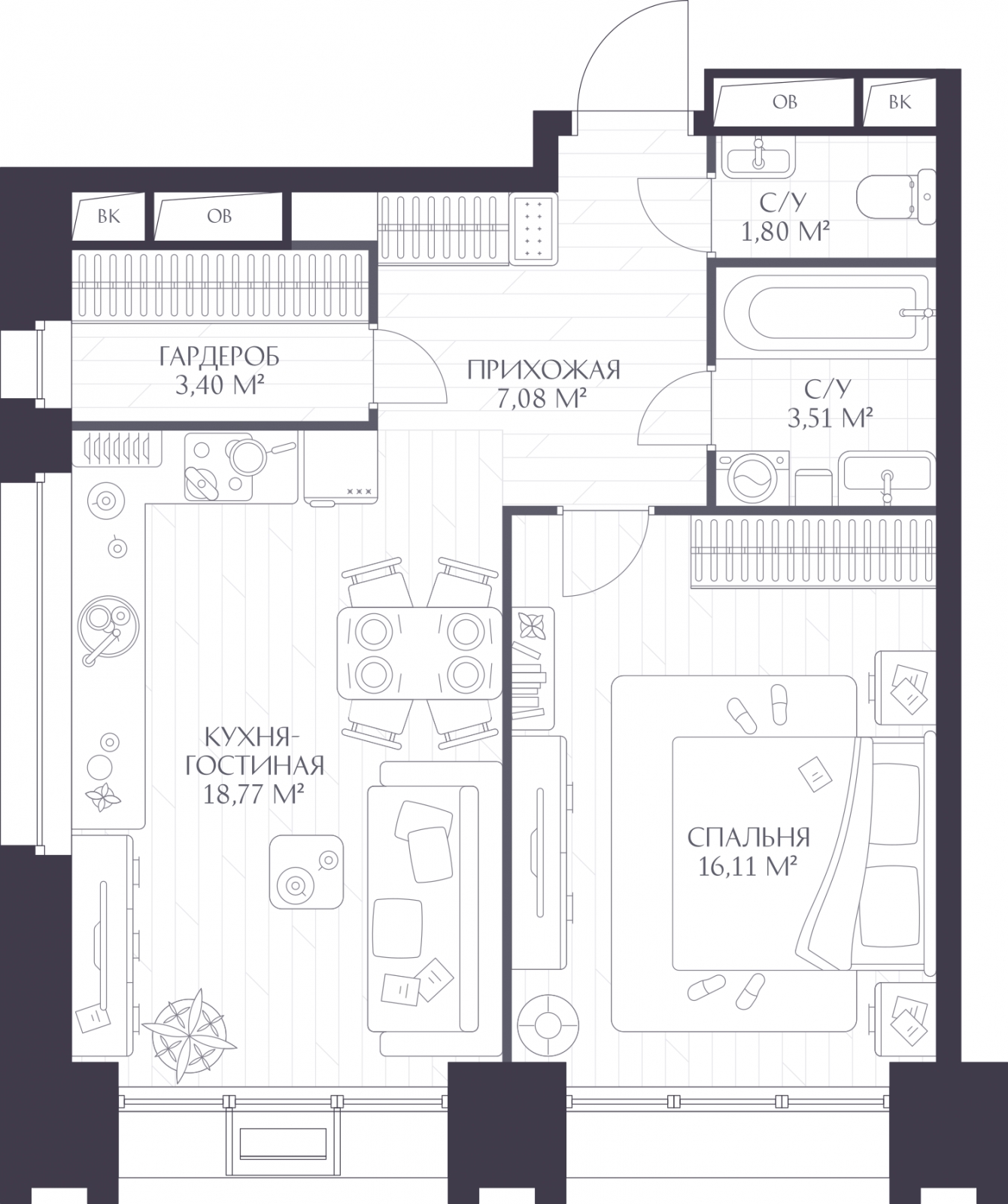 | Площадь кухни | 18.77 кв.м. |